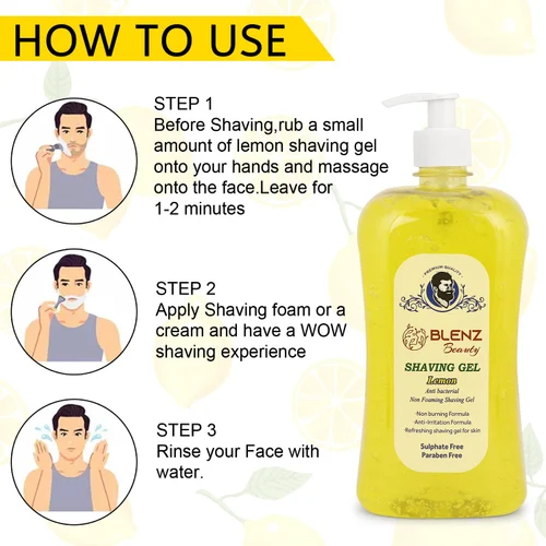 BLENZ BeautySHAVING GELLemonAnti bacterial Non Foaming Shaving GelNon burning Formula-Anti-Irritation FormulaRefreshing shaving gel for skinSulphate FreeParaben Free